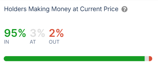 On-chain data shows around 95% of all Bitcoin holders are in profit following the latest bullish action that the asset’s price has seen.