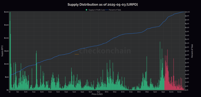 In a new post on X, analyst Checkmate has talked about how Bitcoin is looking based on its UTXO Realized Price Distribution (URPD). The URPD is an on-chain indicator that tells us about what part of the BTC supply was last purchased at the different price levels that the cryptocurrency has visited in its history.