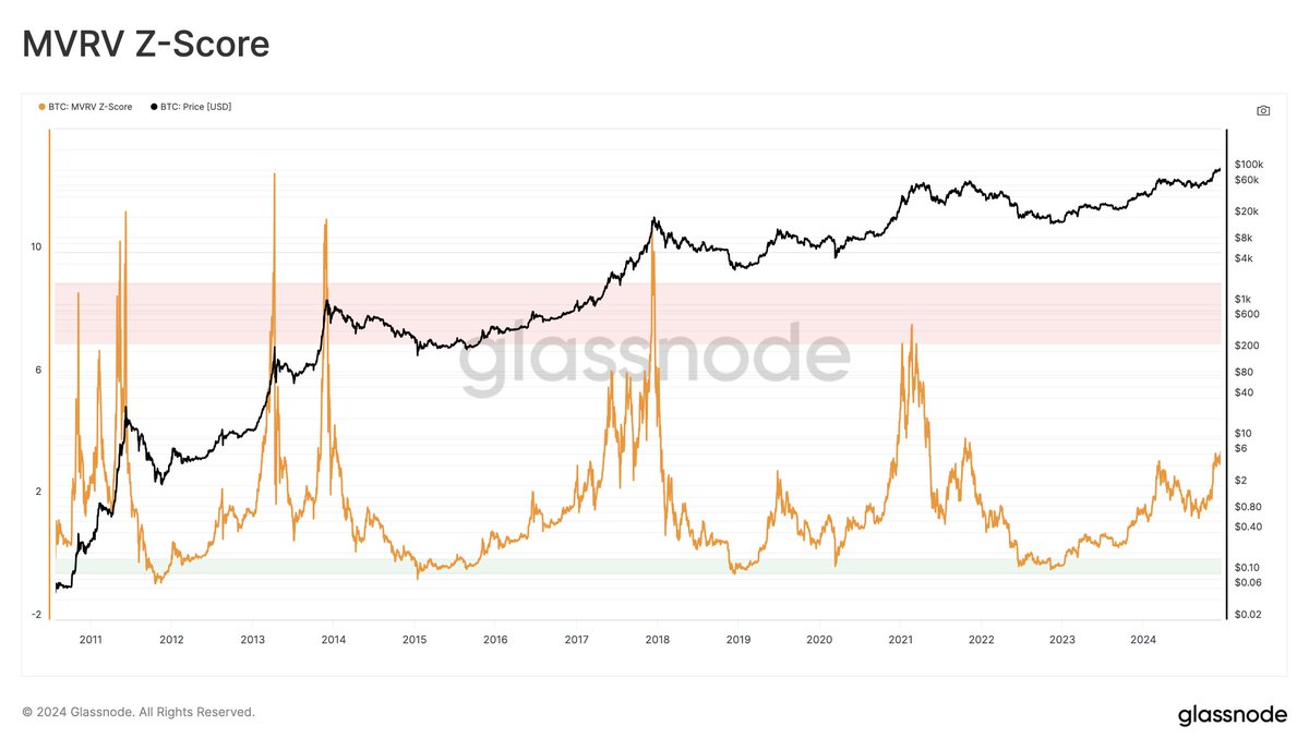2/ MVRV Pricing Bands: These bands are derived from the number of days MVRV has spent at extreme levels. The top band (3.2) has been exceeded for only about 6% of trading days historically. Today, this top band corresponds to a price of $127,000. Given that Bitcoin sits at around $98,000, the market has not yet reached a zone that historically marked top formations.