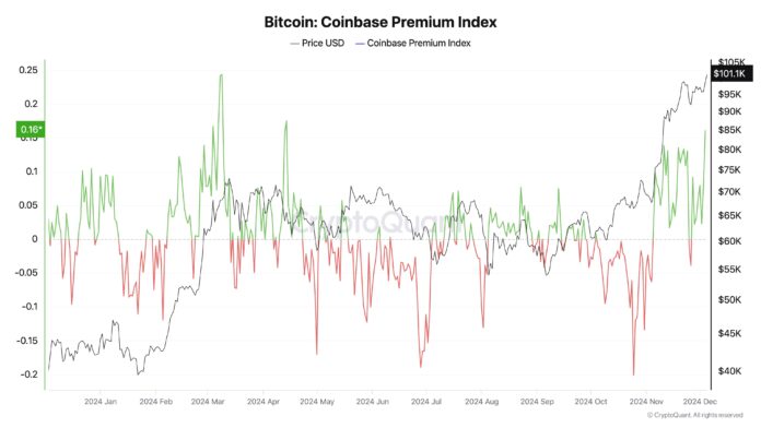 Supporting this notion, CryptoQuant reported: “Bitcoin passes $100k as institutional demand drives the market. The Coinbase Premium Index highlights sustained buying pressure from US investors.”