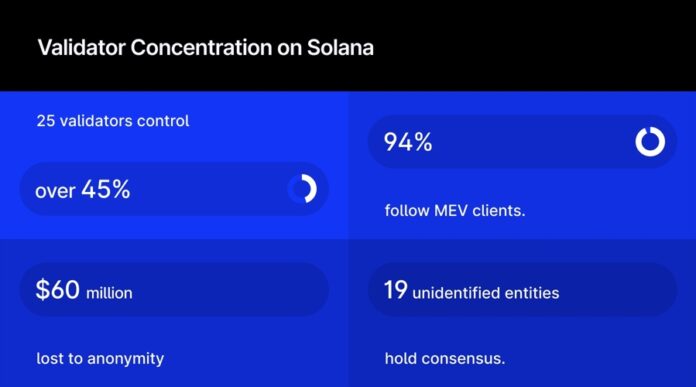 25 Solana validators control 45.5% of all stake, yet users delegating billions