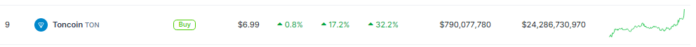 Toncoin (TON), the native token of the Telegram Open Network (TON), is experiencing a meteoric rise after a major investment from venture capital giant Pantera Capital. The news sent positive vibes through the crypto market, propelling TON’s price over 30% in the weekly timeframe, and reigniting investor enthusiasm for the project.