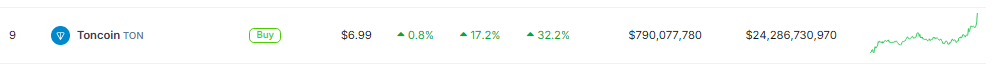 The news of Pantera’s investment, coupled with Telegram’s commitment to TON integration, fueled a buying frenzy in the TON market. The token price surged near the $7 mark, inching closer to its all-time high of $7.25. This price increase reflects renewed investor confidence in TON’s future prospects.